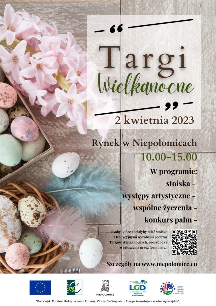 2 kwietnia 2023, w Niedzielę Palmową, w godz. 10.00-15.00 na Rynku w Niepołomicach odbędą się Targi Wielkanocne.